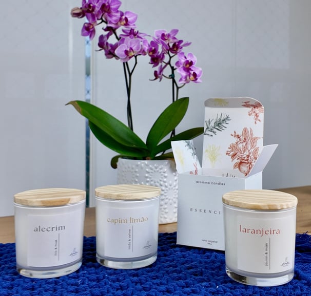 Descubra o luxo e o bem-estar com as velas aromáticas Aromma Candles. Feitas com ingredientes naturais e fragrâncias exclusivas, como Olho Grego, Alecrim, Capim Limão, Canela e Lavanda. Crie uma atmosfera sofisticada, perfeita para relaxamento e estilo de vida elegante. Viva uma experiência sensorial única com velas que unem design, aroma e harmonia.